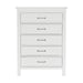 The transitional styling of the Blaire Farm Collection serves as the perfect complement to the rustic aesthetic that inspired the design. Fixed handle pull hardware fronts the drawers while horizontal accent at the top of the headboard and the top drawers of each case piece lends visual contrast. The white finish that covers the collection lends to a versatile look sure to be a perfect fit in your home.