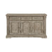 An elegant blend of traditional styling and rustic aesthetic combines to create the look of the Southlake Collection. The wire-brushed brownish-gray finish highlights the oak veneer. The collection features solid wood construction of the server. The server provides ample behind door and drawer storage in which to stow your tabletop accessories. The doors and drawers feature nickel bar and knob hardware. 60 x 18 x 36.5H