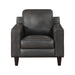 The tailored lines of the Aldrich Collection harken to the retro-inspired refinement of mid-century design, their understated elegance a perfect pairing for your living room. Gray genuine leather covers the frame of the chair, where the body touches, with faux leather match everywhere else. The modern profile of the collection is supported by conical legs, while track arms define the timeless look. 34.5 x 38.5 x 36.5H