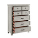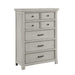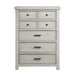 The Providence Collection’s lines and versatile finish create a classic addition for your bedroom. Oak veneer is finished in antique white, serving as a neutral canvas for your personal decorative preferences. The antique black tone metal knob and bar hardware provide complementing contrast to the light finish of the chest. 42 x 18 x 57H