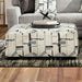 This ottoman has its way of making your living room the warmest place in your home. It's upholstered in ivory, patterned chenille, inviting and welcoming to any guest. Sturdy, tapered block legs support a solid wood frame inside.