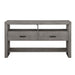 At the intersection of modern and rustic design, the Gresham Collection brings you to a full stop. Clean lines are paired with the natural beauty of acacia veneer, while a gray finish lends neutral versatility to the décor of your casual dining room. The rustic look of the server’s plank styling is interrupted by the modern lines of the piece’s angled edge. The open display shelving of the server further lends to the modern look of the collection while providing drawer storage for your tabletop décor. 62 x 19 x 34H