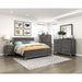 The sleek design of the Zephyr Collection pairs clean lines with modern convenience to create a style that will be the perfect palette for your design aspirations. The full-size low-profile panel bed features painted metal-finish banding on the headboard’s sides and the footboard’s base rail, creating the perfect accenting contrast to the dark gray faux wood finish of the melamine veneer.