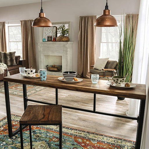 FOA WestA minimalistic take on the industrial trend, this bar table is narrow and feature footrests on one side of its long edge and a pair of slender squa...