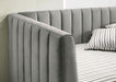 NEOMA Twin Daybed, Light Gray, 81 7/8"L X 42 1/2"W X 31 5/8"H, 116.8lbs. Sophisticated and charming, this light gray daybed is elegantly designed to maximize comfort. It's great for lounging with family and friends in the morning hours, and it's great for a good night's rest as well. The tuxedo-inspired design, with arms as tall as the back, lends a classic look alongside the gold metal legs. It's fully upholstered in padded flannelette for overall softness.