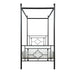 Inspired by vintage design, ball finials top the canopy frame while prominent decorative jointing and classic quatrefoil pattern lend to the modern traditional look of the Hosta Collection. The built-in platform support allows for the use of a mattress without a box spring. The Hosta collection is offered in twin and queen size bed options for versatile placement within your home. 40.5 x 78 x 77H
