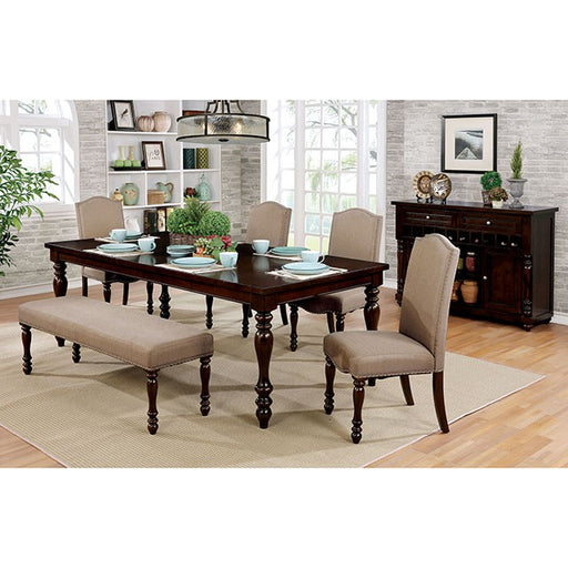 FOA WestHOLCROFT Antique Cherry/Beige Bench, 56"W X 16"D X 18 1/2"H, 35.2lbs. Bring some classy inspiration into your dining room with this warmed toned wo...