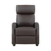 Whether as a stand-alone piece or addition to your existing casual seating group, the Greenfield Collection provides a comfortable addition to your living space. The pushback recliner features track arms and for your ultimate comfort, eases into the prone position with motion that is initiated by your push. The chair is covered in dark brown faux leather upholstery, a versatile hue to perfectly complement your home’s décor. 27 x 34.5 x 40H