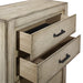 The Ashland Bedroom Collection is a stunning addition to any home, offering a perfect blend of style and functionality. The collection includes a bed, dresser, mirror, chest, and nightstand, all made from high-quality rubberwood solids and mindy veneers. The wire brush finish gives the pieces a unique, rustic look that is sure to complement any bedroom decor.The Kenlin glides make opening and closing the drawers a breeze, while the English front/French back dovetail construction ensures the drawers are strong and stable. The top drawer is even lined with felt to protect your most delicate items. This attention to detail is what sets the Ashland Bedroom Collection apart from others on the market.The bed itself is a work of art, with a sturdy frame. The dresser provides plenty of storage space, with multiple drawers to keep your clothes and other belongings organized and out of sight. The matching mirror and chest complete the look, adding the final changes to your bedroom oasis.The nightstand is the perfect place to keep your bedside essentials within easy reach, with a handy drawer for storage and a convenient surface for a lamp, alarm clock, or other items.