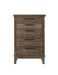 The Cagney Bedroom Collection is a stylish and practical addition to any home. This collection includes a bed, chest, dresser, mirror and nightstand, all made with durable rubberwood solids and acacia veneers. The collection is available in two finishes - chestnut or vintage - to complement any decor.The 100% polyester upholstery, available in coffee or gray, adds a touch of comfort and luxury to the collection. Each piece English/French dovetail construction and ball bearing glides for smooth operation. The top drawers are also felt lined for added protection of your belongings.With its sleek design and sturdy construction, the Cagney Bedroom Collection is the perfect choice for anyone looking to upgrade their bedroom furniture. So, it will be a great choice for you.