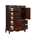 Crafted with a penchant for Old World artistry and the Capital of Algeria-inspired, the Constantine collection is the perfect addition to traditional living rooms. Algiers sits on the Mediterranean coast and is surrounded by steep hills, beautiful monuments, and striking buildings throughout the city. The perfect balance of comfort and style, this shapely arched set Queen Ann legs and a sophisticated appeal. This classic dark walnut finish frame an elegantly carved crown and grooved trim in gold brush accent.