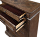 The Mar Vista Bedroom Collection is a stylish and functional addition to any bedroom. The collection includes a bed, nightstand, dresser, mirror, chest, door chest, and a swivel lingerie chest with a mirror.Featuring a brushed walnut finish and made from rubberwood solids and oak veneer, the Mar Vista Bedroom Collection is both durable and stylish. The pieces in the collection come with full extension drawer glides, English dovetail drawers, and a finished drawer interior for added convenience and functionality.In addition, the velvet-lined drawers and cedar bottom drawer in the chest and dresser provide added protection for your belongings. The door chest a reversible door panel that can transform from a solid to a parquet pattern, adding a touch of style to your bedroom.Overall, the Mar Vista Bedroom Collection is a great choice for anyone looking to add a touch of style and functionality to their bedroom. Its durable construction and thoughtful design make it a perfect fit for any home.