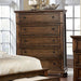 Your peaceful, organized bedroom oasis will be waiting for you at the end of each day. Felt-lined top drawers, cedar bottom drawers make for excellent storage compartments. All drawers are quality built with ball-bearing drawer glides for years of use. Warm finishes and classic bun feet complete the look of this elegant bedroom chest.
