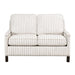 Traditional accents abound in the design of the Landrum Collection, their understated elegance making for classic addition to your living room. Nailhead trim and dark brown finished solid wood legs complement the striped textured fabric that covers the love seat. The reversible backs and seat cushions of the seating group are perfect for your active home. 54 x 35 x 37H