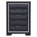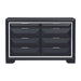 The modern design of the Rosemont Collection creates a striking profile for your bedroom. The midnight blue finish is reflected by the chrome banding that defines the front of each piece in the collection. The bookcase headboard and storage footboard proved additional functional storage space beyond the available dresser, chest and night stand. Chrome pull hardware fronts each of the raised drawer fronts.