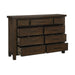 The transitional framing of the Logandale Collection allows for versatile placement within a number of classic bedroom decors, making a perfect choice for your home. A brown finish is utilized over mango veneer for subtle highlighting of its distinct grain. A total of 6 drawer units are located on the side rails and footboard, creating additional storage space within your bedroom, beyond the traditional dresser, chest, nightstand and wardrobe chest. The sleigh headboard is paired with a platform footboard resulting in an unfettered design.