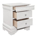 The unexpected intersection of traditional design and glamorous styling creates a dynamic look perfect for your bedroom. A white finish utilized to enhance the faux alligator embossed fronts of the bed and coordinating case pieces. The headboard features a faux leather crystal-tufted headboard as well as dramatic LED backlighting. Crystal faceted knob hardware fronts each alligator embossed drawer front. The nightstand, dresser, and chest each feature hidden storage allowing for the discrete placement of your personal affects.