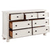 - Dresser with 7 dovetail drawers with ball bearing glides, and top center drawer with felt-lined jewelry tray