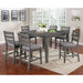VIANA Counter Ht. Table, 54"L X 54"W X 36"H, 121lbs. This transitional set is the versatile dining collection you have been looking for. The neutral gray finishes allow you the freedom pair this table with everything from earthy tones to bold colors. The plank-style table top features natural wood patterns for a rustic touch. The ladder-back chairs feature padded and upholstered seats, ensuring inviting comfort for you and your guests.