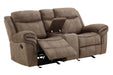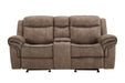 New Classic Furniture Harley Glider Console Loveseat with Dual Recliners in Light Brown