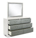 The Luxor Bedroom Collection is a sleek and modern addition to any bedroom. Made from birch and poplar solids and oak veneers, this collection exudes a stylish and contemporary feel.The collection includes a bed, a nightstand, a dresser, a mirror, and a chest. These pieces are upholstered in a combination of 3% faux leather, 70% PVC, and 27% Terylene, providing a durable and comfortable surface.The Luxor Bedroom Collection is available in black and white, allowing you to choose the color that best fits your personal style. Its sleek and modern design makes it a perfect choice for anyone looking to add a touch of contemporary style to their bedroom.