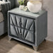CARISSA Night Stand, 26 3/8"W X 18 1/8"D X 28"H, 72.7lbs. The ultimate Art Deco-inspired night stand! The elegance, glamour, unique shapes and vintage appeal of 1930's Hollywood is right here! The decadent black velvet upholstery looks like it came right out of a classic old movie! There's a prestige with the unique design that seems to capture all of the excitement of a beloved bygone era! Additional embellishments such as rhombus chrome feet and diamond ring drawer-pulls faithfully enhance the cinematic reality.