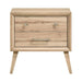 The Marrin Collection’s Mid-Century-inspired design lends timeless style to help you achieve the modern aesthetic you desire for your bedroom. The look of natural wood is presented in the form of the melamine that covers the collection, its natural hue providing neutral complement to your décor. Brushed nickel knob and bar hardware front the drawers of the nightstand. Unfettered lines define the classic style, from the support legs to the framing, each element furthers the timeless design. 25.5 x 16.5 x 26.5H