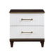 Tasked with executing a design that encompasses the trademarks of contemporary design while including hints at a glamorous lifestyle, the Niles Collection perfects the look. Brushed gold-tone knob and bar hardware radiate from the two-tone white and cherry finish of the collection, the dramatic combination creating an elegant statement of design perfection. Routed panels front the nightstand while gold-finished trim further accents the piece. 28 x 17 x 28.5H