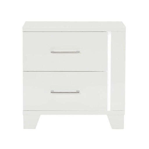 Homelegance (Fremont Warehouse)Kerren Collection by Homelegance White high gloss finish Crafted from manmade wood and wood Polished chrome tone bar pulls 2 drawers Dovetail d...