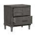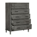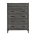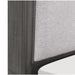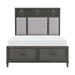 Modern convenience is paired with transitional style to create the versatile look of the Wittenberry Collection. The multi-functional design of the bed allows for convenient storage within the footboard drawers, charging capability by way of the mounted USB ports, as well as display and illumination within the touch-engaged LED-lit open fronted bookshelves of the headboard. The bed’s headboard also features pebble gray hued fabric inserts creating complementing contrast to the collections gray finish over okume veneer. Dark bronze finished knob and bar hardware front the drawers of the collection.