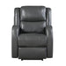 The contoured arms and plush seating of the Foxcroft Collection are covered in gray faux leather upholstery, combing to take your comfort to the next level. When the one-touch power reclining mechanism is activated you are taken from a seated to reclined position in one easy movement. 30.5 x 37.5 x 39.5H