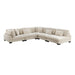 Configurable to your available space, the Traverse Collection allows for the addition and detachment of pieces for a customized seating experience. The 5-piece sectional configuration consists of two corner units paired with three armless chairs. The plush beige corduroy fabric upholstery creates a plush expanse for a soft touch experience. The corner seat features two toss pillows, adjustable back and arm rest, and reversible cushions. The armless chair features a lumbar pillow, and reversible cushions. 135 x 135 x 34.5H