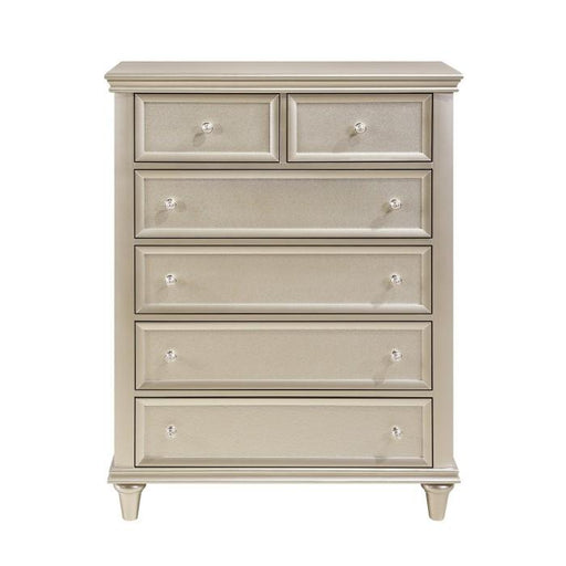 Homelegance (Fremont Warehouse)Celandine Collection by Homelegance Silver finish Made of manmade wood 6 Drawers Dovetail drawers Embossed drawer front panel Ball bearing glides ...