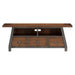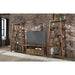 Heavily influenced by industrial design, the Holverson Collection will lend a unique look to your personal space. Gunmetal finished wood framing provides sturdy structure and profile to this home entertainment offering. Faux rivets provide additional detail to the metal bracketing that is prominently on display. A rustic brown milk crate finish is utilized to highlight the acacia veneer. Open media display and drawer storage further the functionality of the Holverson Collection. 64 x 18 x 24H