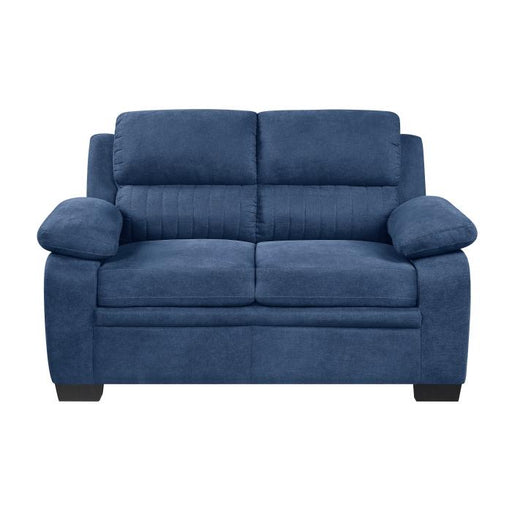 Homelegance (Fremont Warehouse)A modern profile serves to lend visual contrast and support to the plush seating and pillow-top arms of the Holleman Collection. The blue textured ...