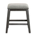 The design of the Timbre Collection will be the perfect seating addition to your casual dining space. The counter height barstool’s legs feature wire-brushed acacia veneer that is highlighted by a gray finish. Topping the stool is the gray chenille fabric seat with nailhead accent. 22 x 17 x 24.5H