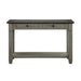Inspired by the aesthetic of a casual country home and providing functional decorative accent for your living room is the occasional table set of the Granby Collection. The two-tone look of the acacia and pine solids base, finished in antique gray, and the oak veneer of the sofa table’s coffee-finished tops, present as a harmonious combination of color, perfect for your home. Dark finished metal knob hardware fronts the functional drawers while providing subtle contrast to the finish of the collection. An open display shelf creates a perfect spot for display of your decorative accessories. 48 x 18 x 31H