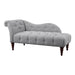 The elegant curve of the Blue Hill Collection creates an air of sophisticated modern traditional styling perfect for your refined decorative preference. Contoured for your ultimate comfort and trimmed with traditional accents, the timeless look will be a wonderful addition to your boudoir or living room. Brown fabric covers the chaise and features button tufting, rolled top arm, curved side panel, and espresso-finished turned wood legs.