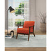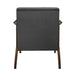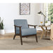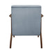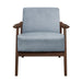 The frame of the Carlson Collection recalls a time when simplicity of profile was the height of style. The streamlined design of the chair's subtly sloped wood arms and legs is finished in dark walnut which serves to highlight the blue-gray velvet covering.