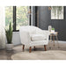 Inspired by the refined styling of the Mid-Century Modern movement, the Cutler Collection presents a tailored profile to pair with your home’s décor. The curved channel-tufted frame envelopes your seated experience while the blue textured fabric upholstery is complemented by the brown-finished wood legs.