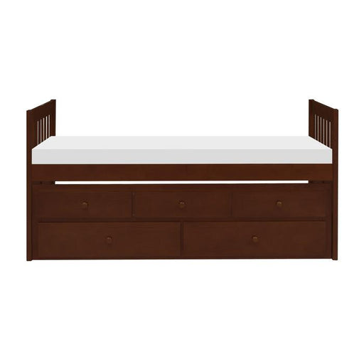 Homelegance (Fremont Warehouse)Rowe Collection by Homelegance Dark Cherry finish Made of Pine veneers and wood 2 drawer with roller side glides Twin trundle bed This bed does no...